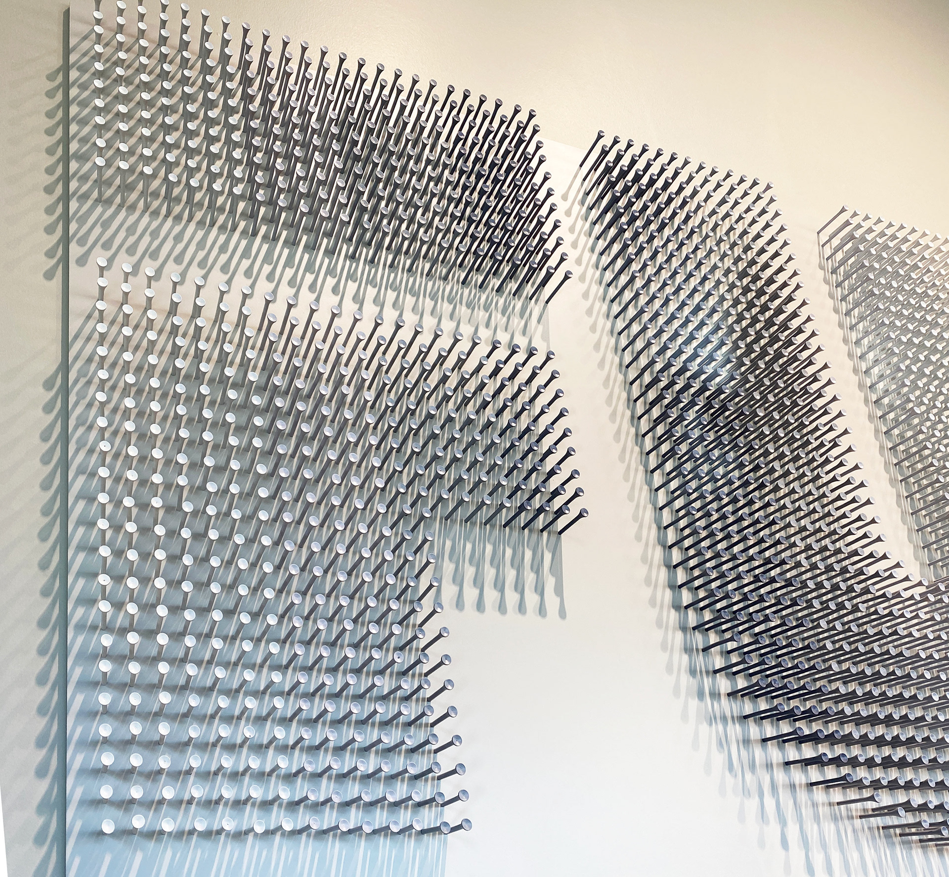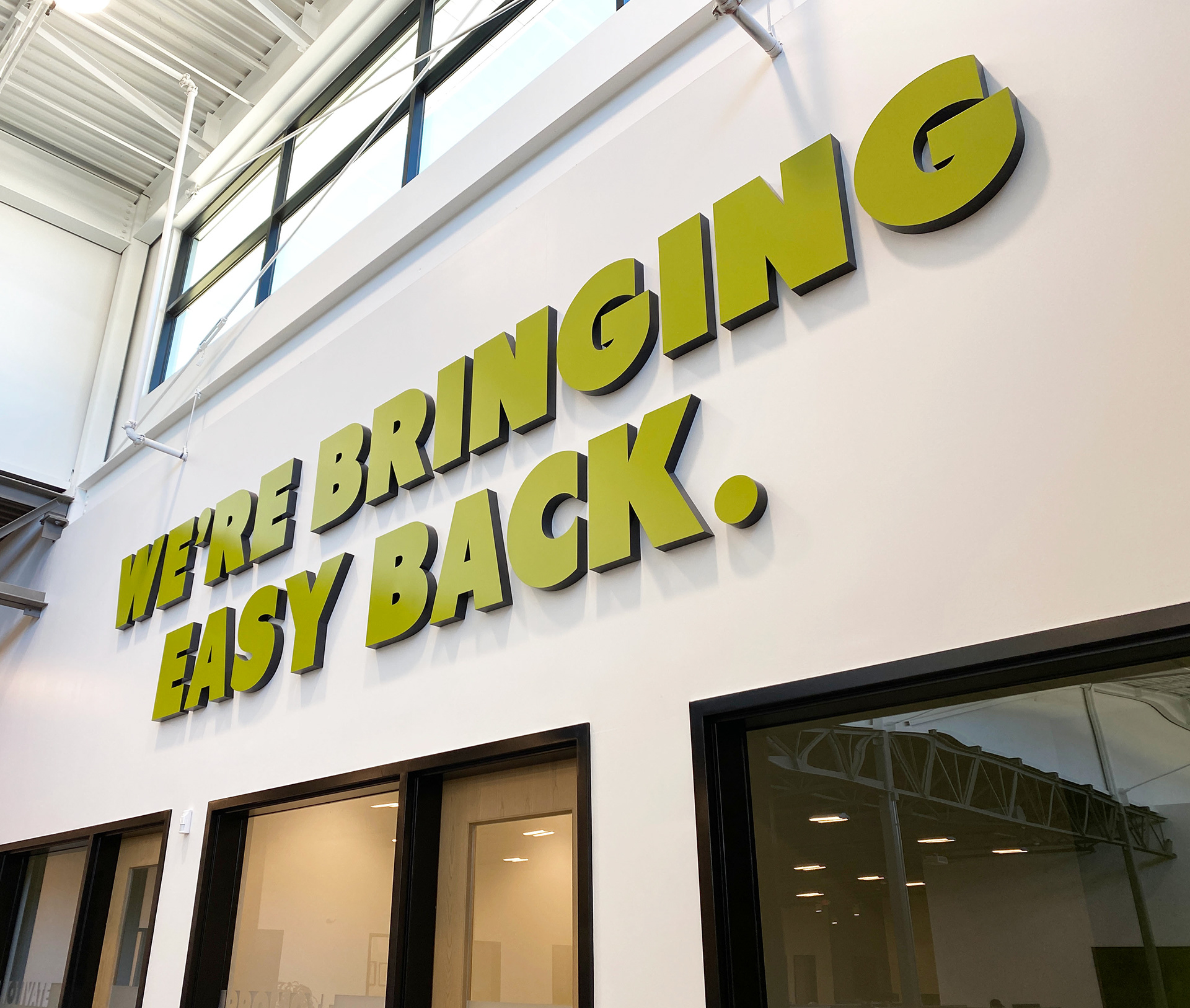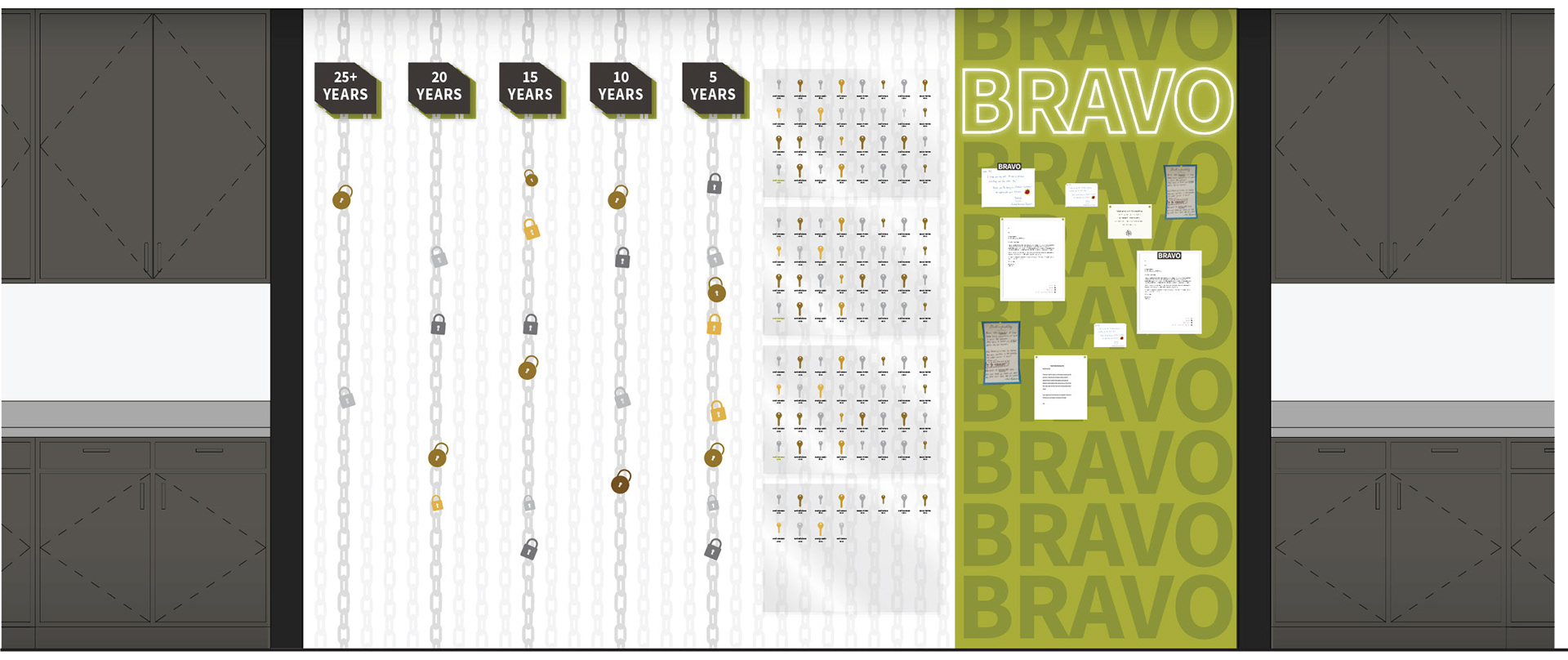 Links Unlimited's Cincinnati headquarters is spacious and bright, meticulously crafted with the intention of attracting and retaining top-tier talent, with a particular focus on Millennials and Gen Z individuals. Playful environmental graphics serve as narrative threads, weaving together the story of Links' evolution from its inception in promotional products to its expansion into fulfillment and procurement services. Among the custom installations are signage ingeniously crafted from golf tees, a reception dimensional collage, and a striking "bravo wall" that ingeniously repurposes chain links to visually commemorate employee tenure and clients' glowing reviews.