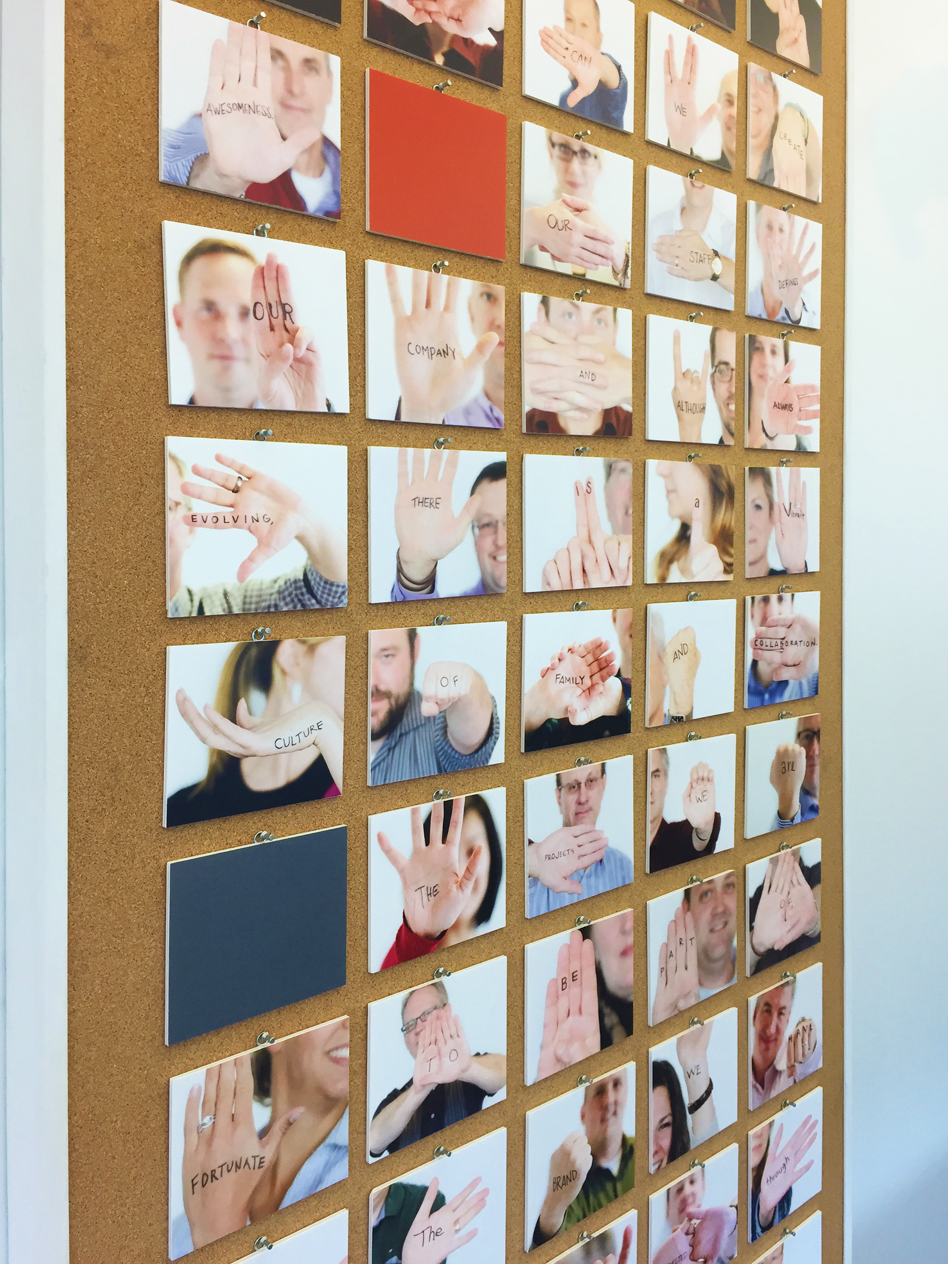 The original Cincinnati office of MA Design serves as a prime example of the transformative power of environmental graphics. The clean, sophisticated, and timeless designs inject vibrant color into the space while simultaneously celebrating the company's culture and its valued employees in a dynamic and updatable way. A meticulously crafted custom die-cut frosted vinyl map not only adds a touch of privacy to the conference room but also serves as an artistic focal point. Additionally, a bespoke printed cork installation proudly displays the firm's expanding portfolio of projects, further honing the office environment with both functionality and aesthetic appeal.