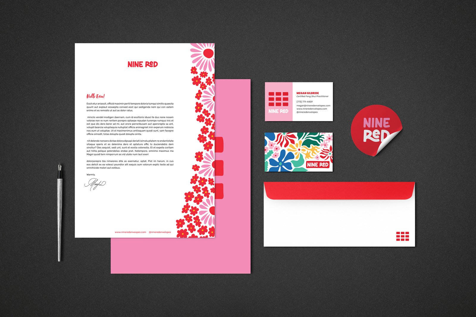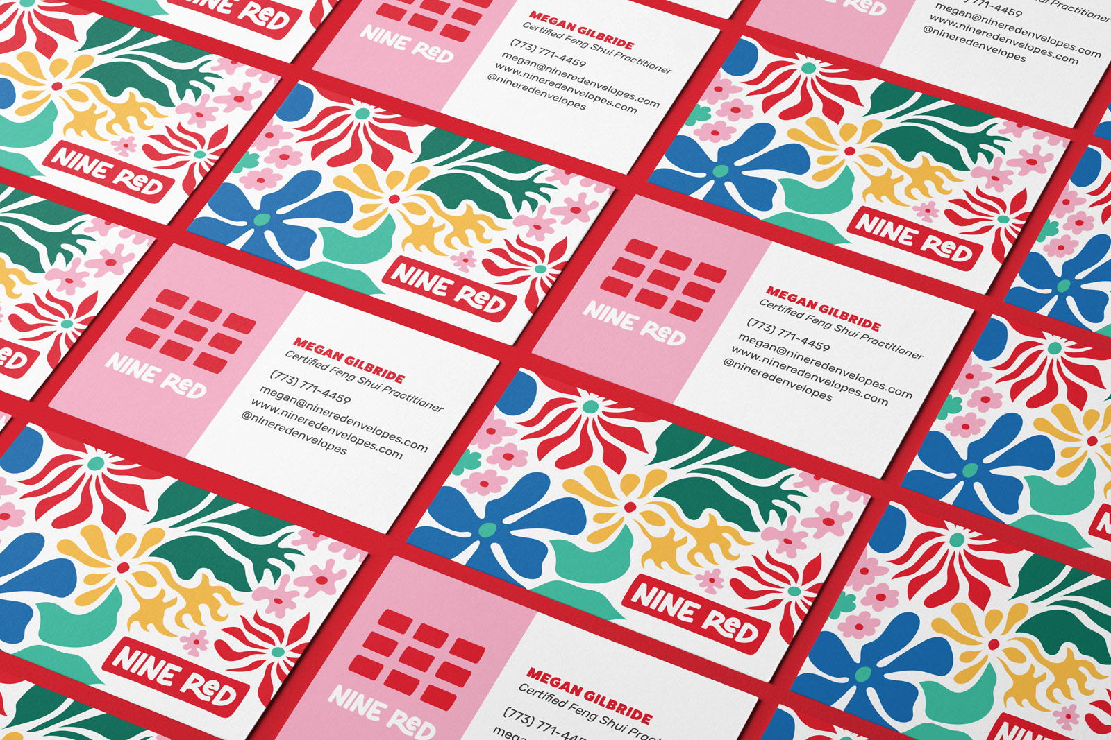 Collaborating with Nine Red, we embarked on a journey to craft a new brand identity and supporting collateral that honors the timeless principles of Feng Shui while accommodating the unique needs of modern clients. Balancing a playful, feminine aesthetic with a sense of contemporary professionalism was key to the vision. To achieve a playful and feminine aesthetic, we infused hand-drawn elements and naturalistic imagery, evoking feelings of positivity and warmth. Nine Red's brand is further characterized by an extended color palette, carefully chosen to reflect ancient symbolism and industry standards alike.